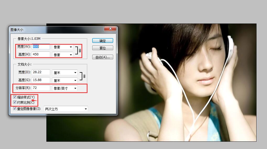 第一步;在phptoshop中打開你需要處理的圖片,然后點擊圖像→圖像大小,如圖所示,圖片的寬度盡量保持在800~900像素之間(具體看網(wǎng)站設(shè)計的內(nèi)容頁寬度大小),高度按照比例即可!分辨率為72,我們可以看到此時圖片大小為1.03M,顯然是不符合網(wǎng)站所用!