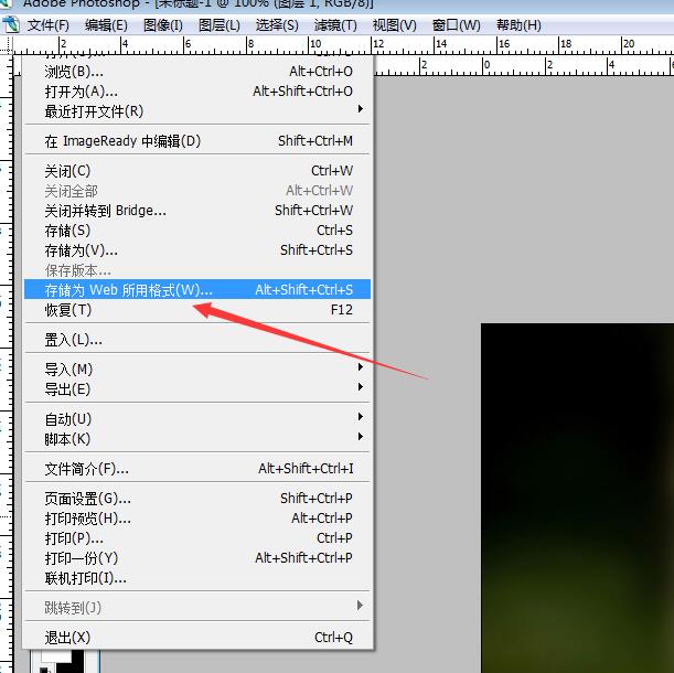第二步:點擊菜單文件,選擇存儲為web所用格式,意思就是存儲為網(wǎng)頁所用格式!